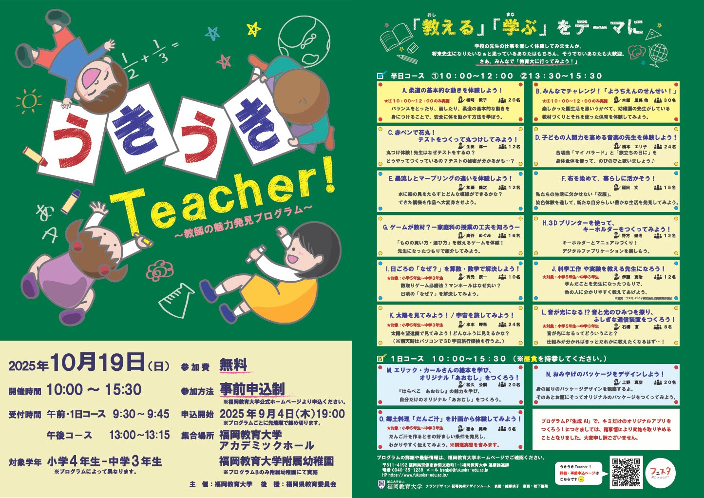 「教える」「学ぶ」をテーマに、学校の先生の仕事を楽しく体験してみませんか。