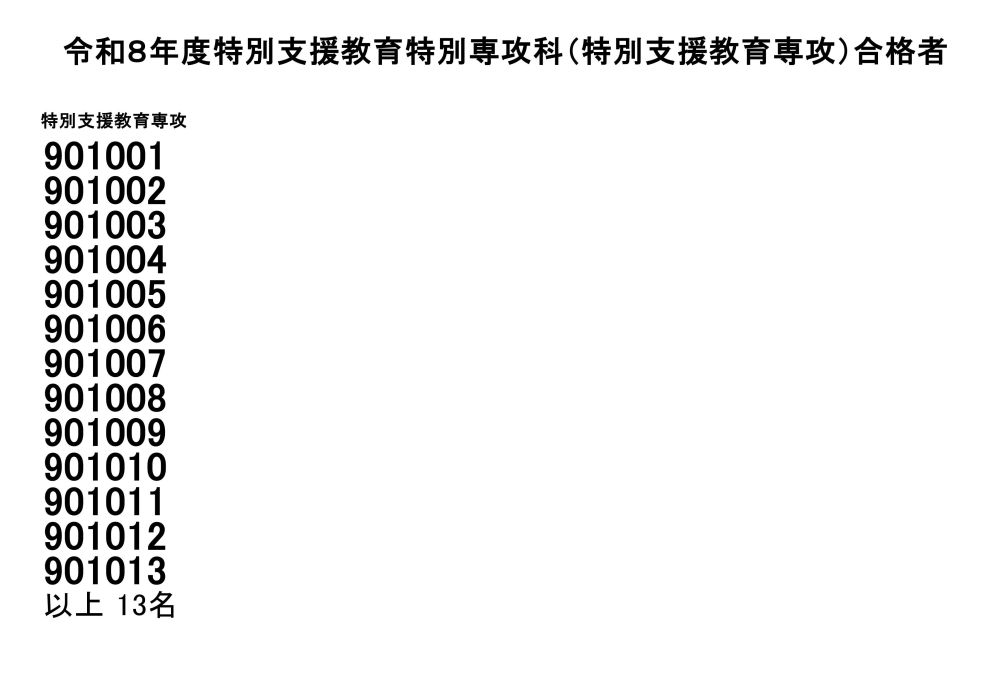 令和8年度特別支援教育特別専攻科(特別支援教育専攻)合格者発表