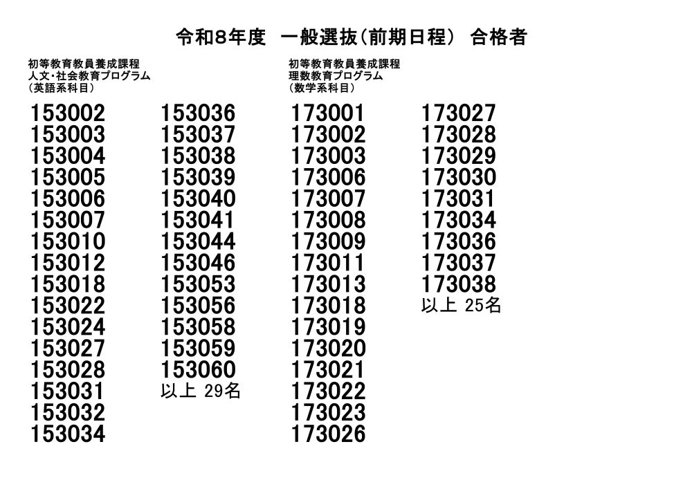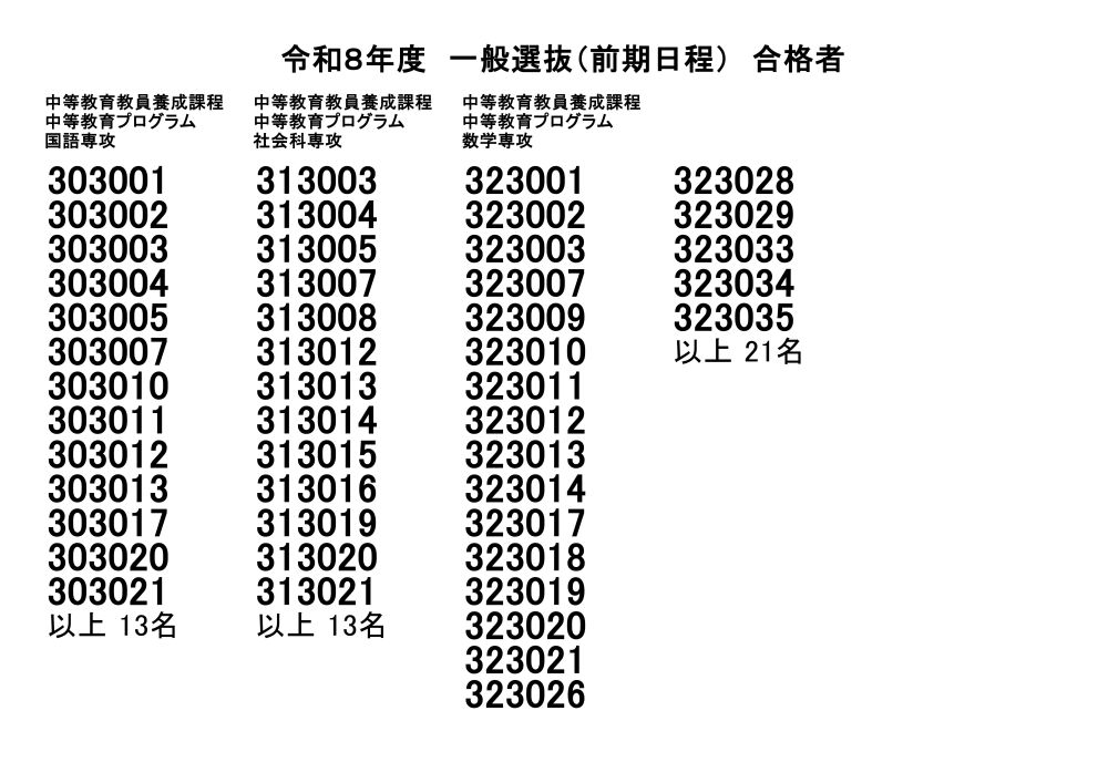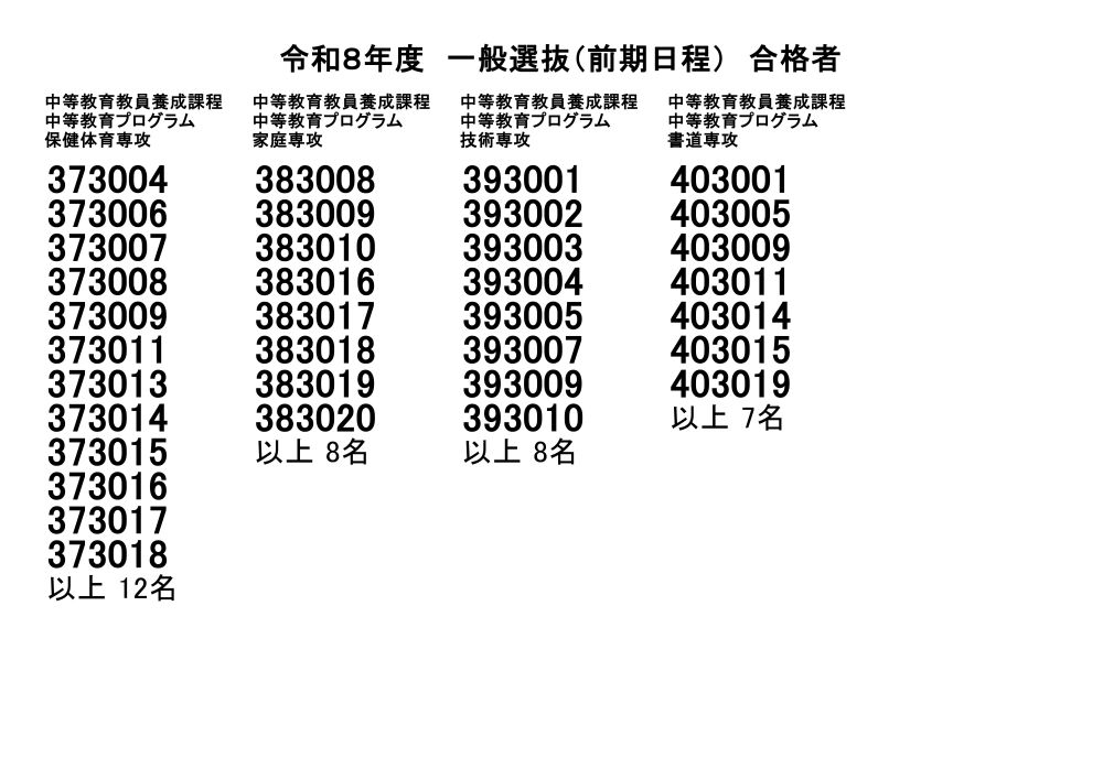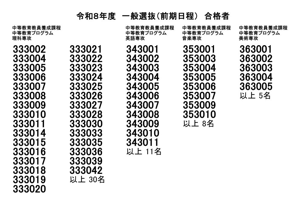 令和8年度一般選抜(前期日程)合格者発表