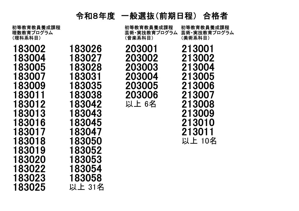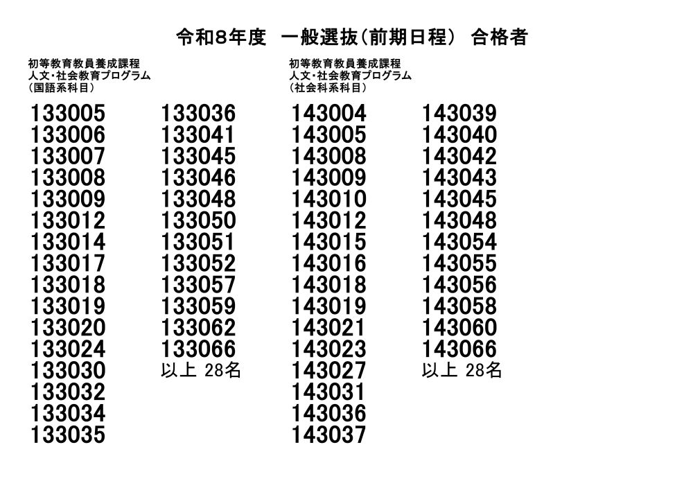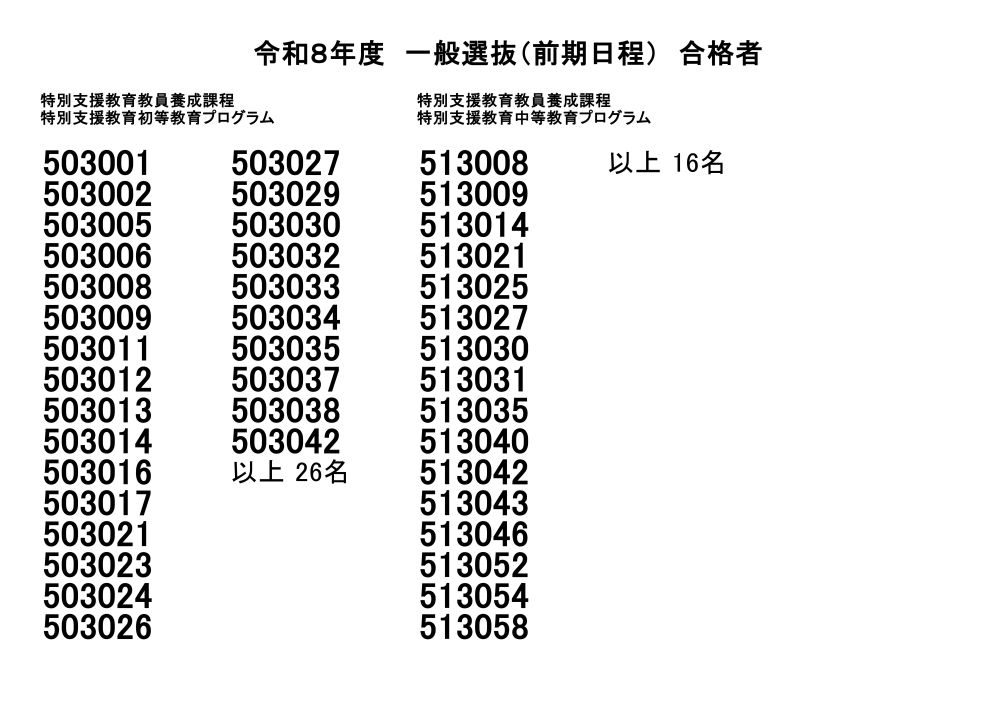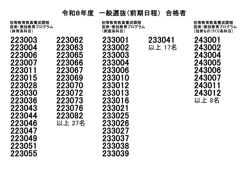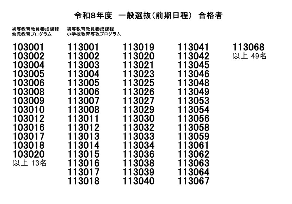 令和8年度一般選抜(前期日程)合格者発表