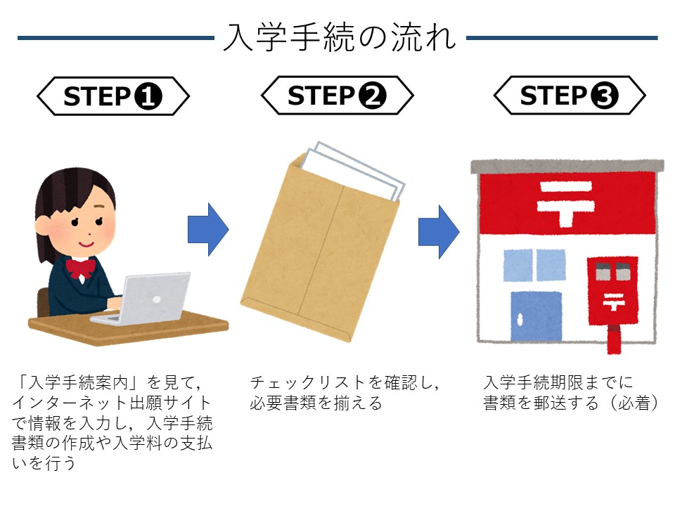 ⼊学⼿続⽅法 郵送のみ受付(窓⼝での受付はできません)
