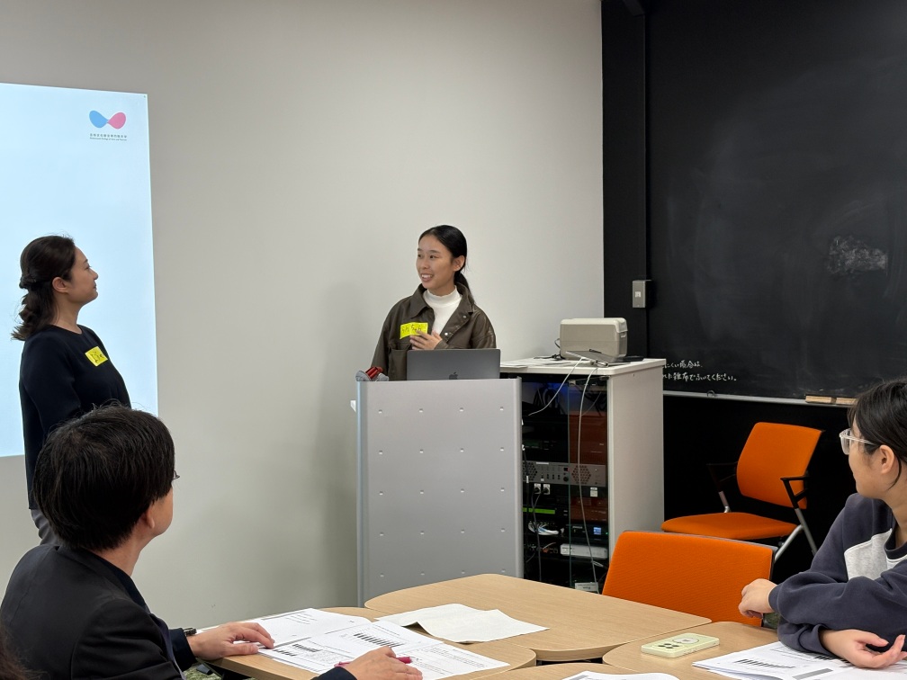 今回の講師は本学大学院修了生であり、現在、芸術文化観光専門職大学で講師を務める姚 瑶(よう よう)先生をお招きし、「外国ルーツの子供をもつ保護者の視点」と題して講座を行いました。講座は、姚先生ご自身のことや外国人住民の支援活動に関わっている体験談を含め、対面参加者もオンライン参加者もグループに分かれ、グループワークやロールプレイを交えて行われました。
