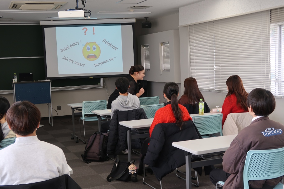 冒頭、二宮グローバルラーニングセンター長より挨拶と講師の経歴紹介があり、その後セミナーが開始されました。開始直後には馴染みのない言語での挨拶と自己紹介が行われ、参加学生は戸惑いながらも応答を試みる姿が見られました。改めて日本語での自己紹介が始まると、学生の緊張もほぐれた様子でした。