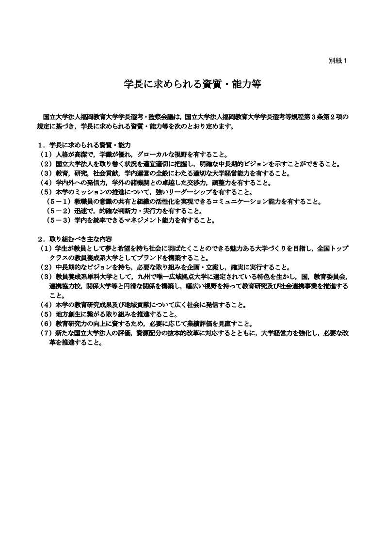 国立大学法人福岡教育大学学長選考等規程