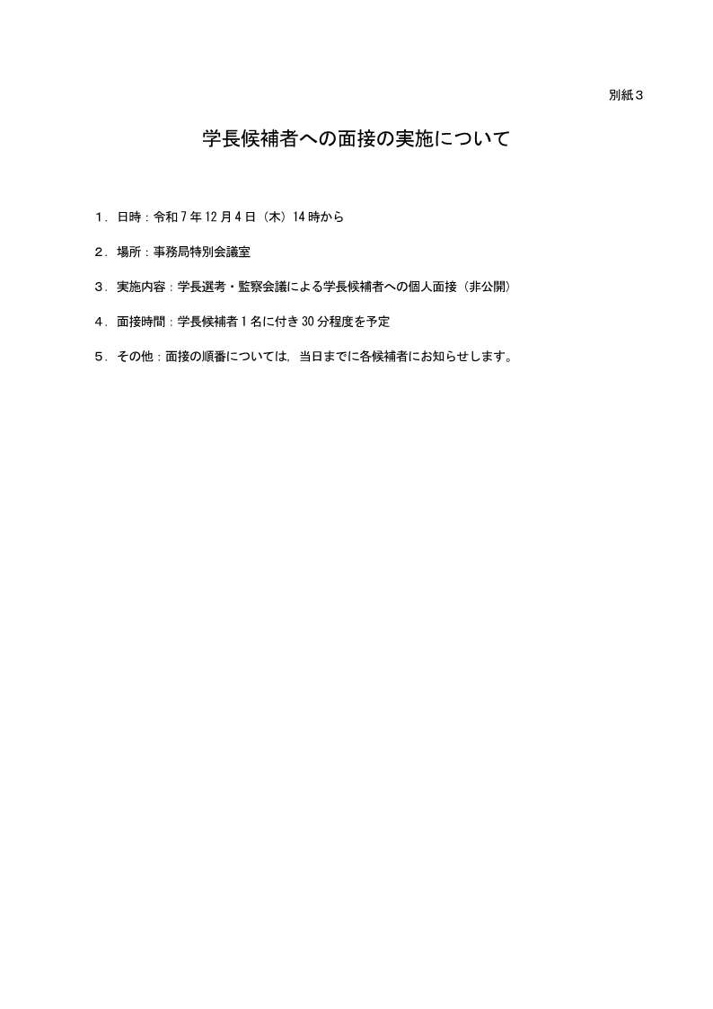 別紙3 学長候補者への面接の実施について(JPEG形式)(令和7年10月3日)