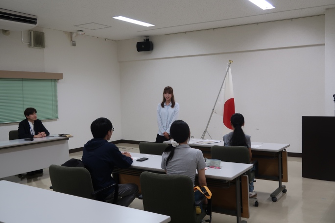 開講式ではグローバルラーニングセンター長の代読による、理事・副学長(国際交流・社会連携担当)からの歓迎のことばの後、留学生担当教員や指導教員の紹介が行われました。出席した留学生は緊張した面持ちで、自己紹介し福岡教育大学で学ぶことの抱負を語りました。開講式終了後のオリエンテーションでは、留学生担当教員から受講する授業について説明を受けた後、令和8年3月から1年間協定校へ派遣留学する予定の本学学生から福岡県内の観光地や近隣のお勧めのスポットなどの紹介がありました。