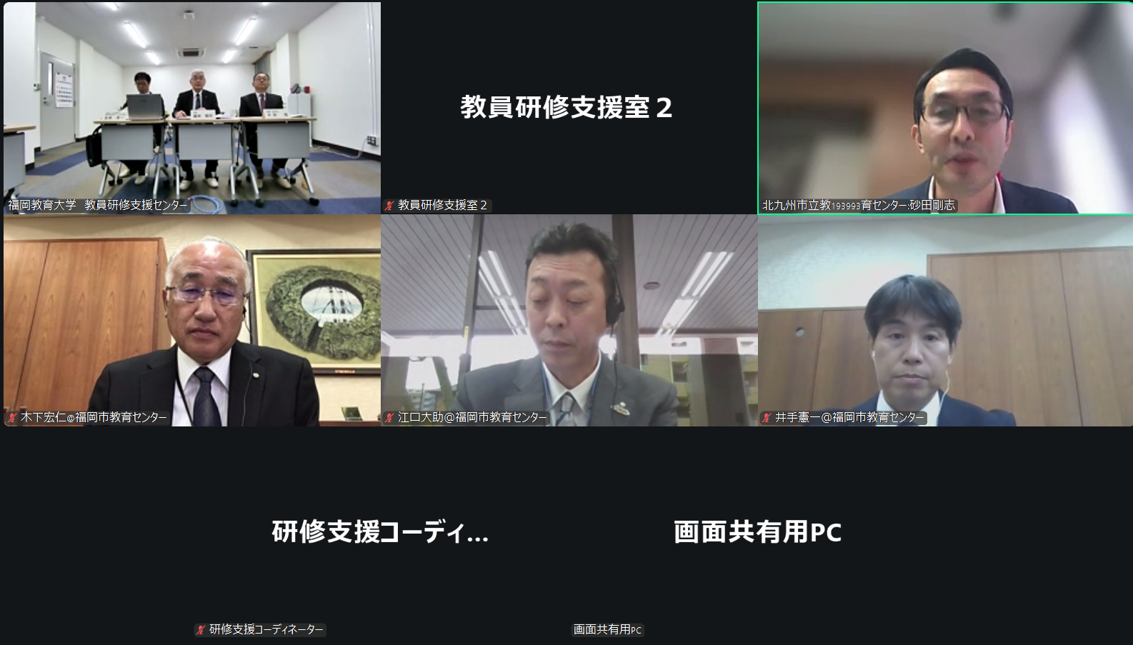 本学は北九州市教育委員会及び福岡市教育委員会との連携協力に関する協定に基づき、教員研修の充実振興について連携して取り組むため、北九州市教育委員会、福岡市教育委員会及び福岡教育大学による教員研修支援連絡協議会を設置することとし、令和7年11月26日(水)にオンラインによる発会式を開催しました。