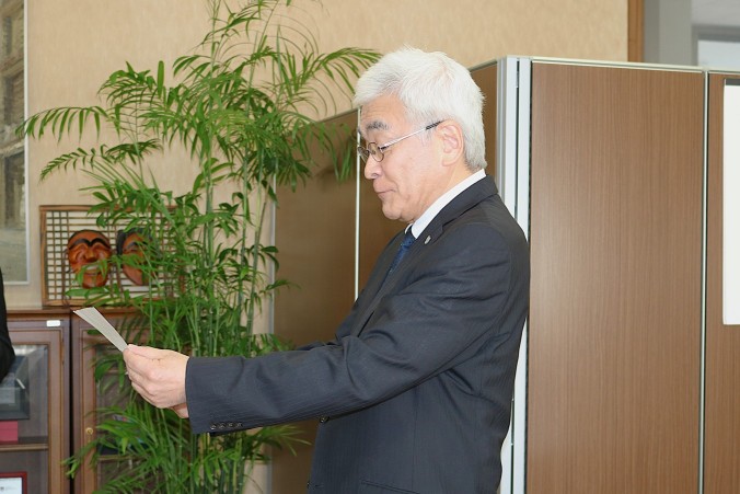 表彰式では、学長から受賞者2名に対し表彰状および記念品が授与され、これまでの教育・研究活動・社会貢献・学内運営に対する多大な貢献が称えられました。また、両名に対し今後のさらなる活躍への期待が述べられました。